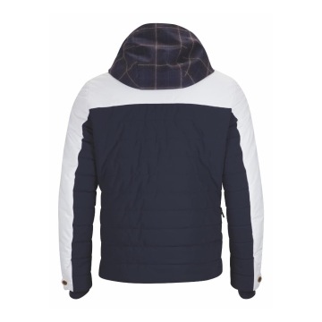 Pánská lyžařská bunda s kostkovaným vlněným detailem na kapuci, odepínací kapuce, manžety s otvorem pro palec, odepínací sněžný pás, kapsa na skipas, dvě veliké kapsy na přední straně, uvnitř kapsa na zip a síťová kapsa s hadříkem na brýle