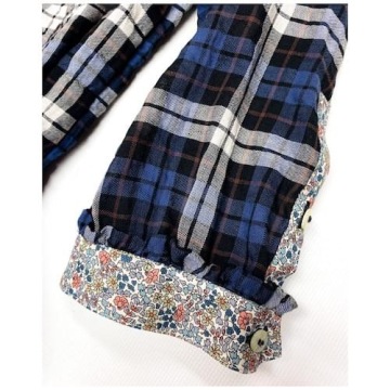 - tříčtvrteční rukáv s volánky a kontrastními manžetami s květinovým vzorem