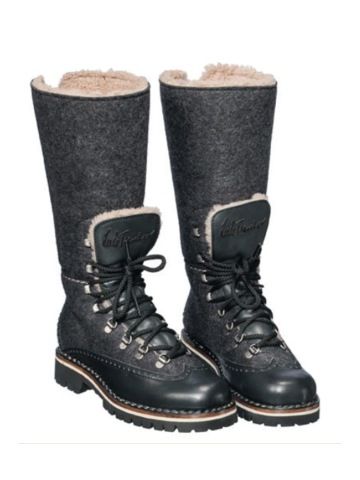 Dámské šněrovací stylové kozačky z kombinace hladké kůže a vlněné plsti