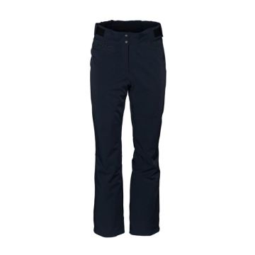 Dámské lyžařské kalhoty. Nastavitelná šířka pasu, sněžné návleky v nohavicích, ergonomicky tvarovaná kolena, kapsa na zip s výšivkou loga.