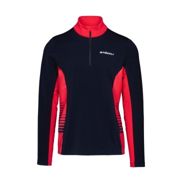 Funkční rolák v jednoduchém, sportovním vzhledu. Slim fit střih, stojáček s polovičním zipem YKK, směs materiálů, kontrastní barva na límci, na bocích a na vnitřní straně rukávů, pruhovaný potisk na vnitřní vsadce.