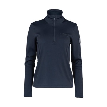 Dámský rolák s vysokým límcem s polovičním zipem a prodlouženým táhlem zipu. 3D logo Stöckli vlevo na hrudi, znak Stöckli na rukávu. Příjemný, pružný materiál.