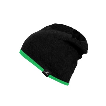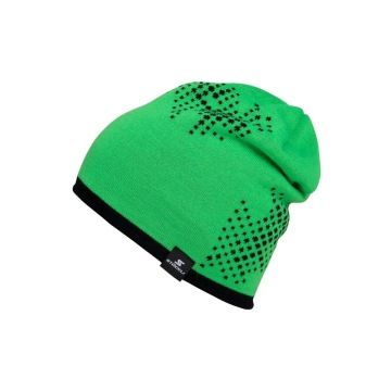 Unisex oboustranná pletená čepice. Z jedné strany tečkovaný motiv, z druhé strany jednodušší jednobarevné provedení. Štítek s logem na spodním lemuviditelný z obou stran.