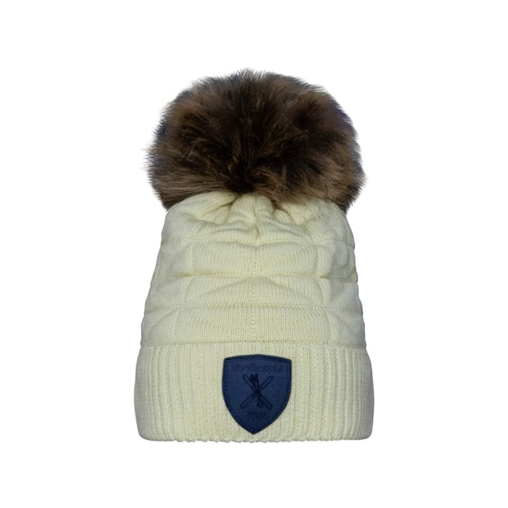 Módní pletená čepice s bambulí z falešné kožešiny, erbový znak Stöckli "since 1935", podšitá fleecem.