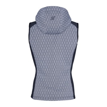 Stylová a všestranná vesta s kapucí. Buď jako střední vrstva pod lyžařskou bundu nebo jako módní oblečení pro volný čas. Třemi slovy: sport, funkčnost, vkus. Směs materiálů, stojáček, přední zip YKK, postranní kapsy na zip YKK.