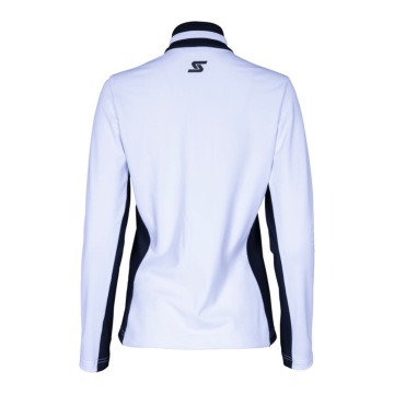 Detail: 3D logo "S" na zadní straně krku, potisk " SKIING IS ALWAYS ON MY MIND" podél zipu.