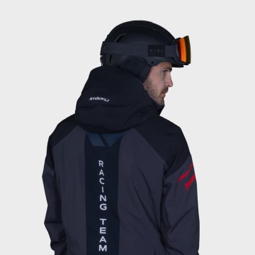 Pěnou vyztužená ramena, 3D nápis na přední straně zapínání límce a na hrudi. 3D nápis Racing Team na zádech, 3D "S" logo na kapuci. 3D odznak Racing Team na pravé paži. Puntíkatý motiv na přední straně límce a na hrudi. Sněžný pás s potiskem Stöckli. Prémiový tkaný štítek Stöckli uvnitř bundy.