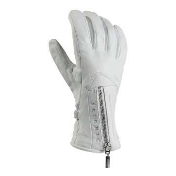 Elegantní, dámské, celokožené, lyžařské rukavice VIST. Nastavitelná šířka manžety pomocí zipu. Kovový zip a jezdec s logem. Měkká, příjemná kůže, embosovaný nápis Skichic podél zipu.