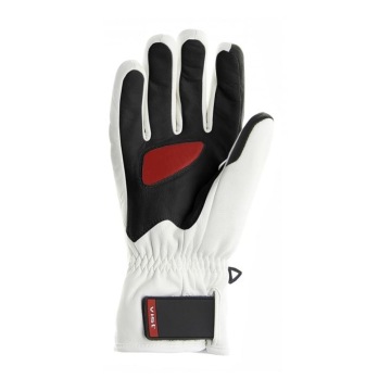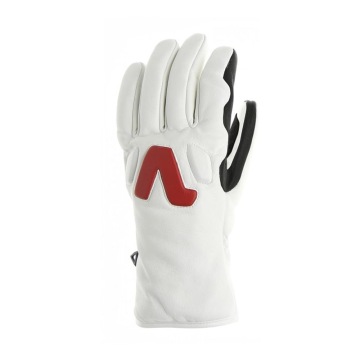 Pánské lyžařské rukavice z příjemné měkké kůže. Lehké polstrování ve tvaru písmene "V". Kontrastní černá dlaň. Nastavitelná šířka manžety pomocí suchého zipu.